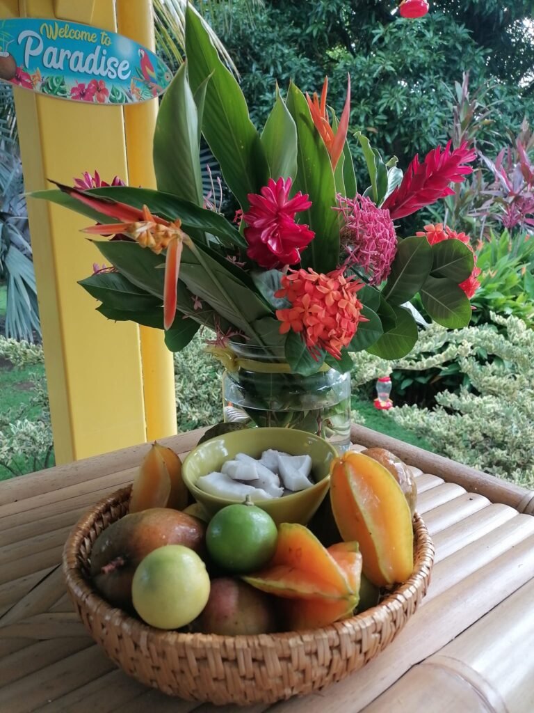 Imaginez vous déguster les saveurs emblématiques de la cuisine créole : accras croustillants, colombo parfumé, langouste grillée ou poisson frais du jour… devant un tel spectacle !