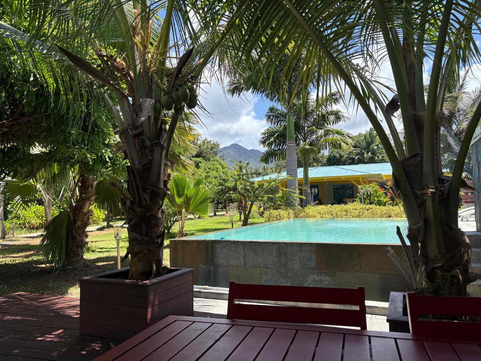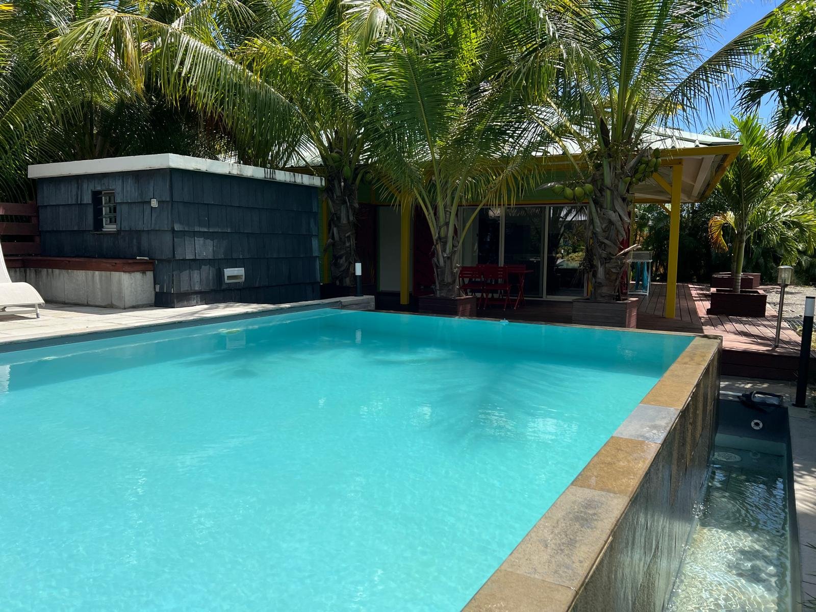 La Villa Manguier, petit paradis tropical pour 2 à 4 personnes, 90 m² de confort, 2 chambres climatisées et piscine privée à débordement. Cuisine équipée, terrasse couverte avec barbecue, et ambiance caribéenne authentique.