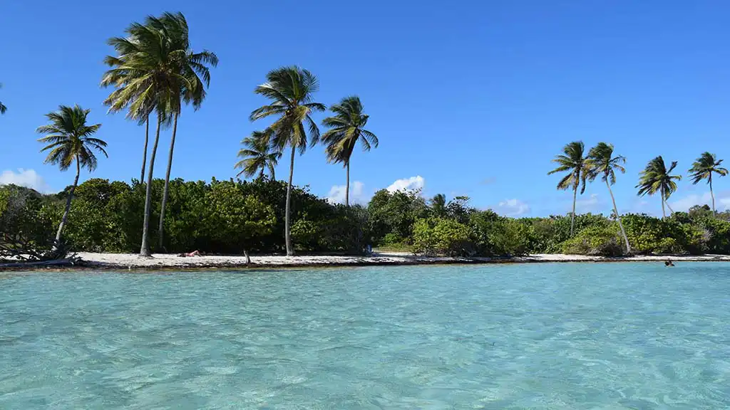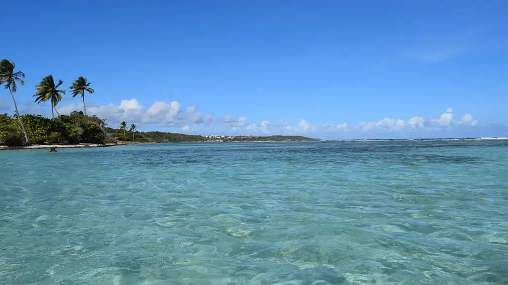 La plage de Bois Jolan s’étend sur 2 kilomètres de sable blanc et fin, bordée de palmiers qui dansent doucement au gré du vent. Eaux cristallines calmes et peu profondes, parfaites pour la baignade en toute sécurité.
